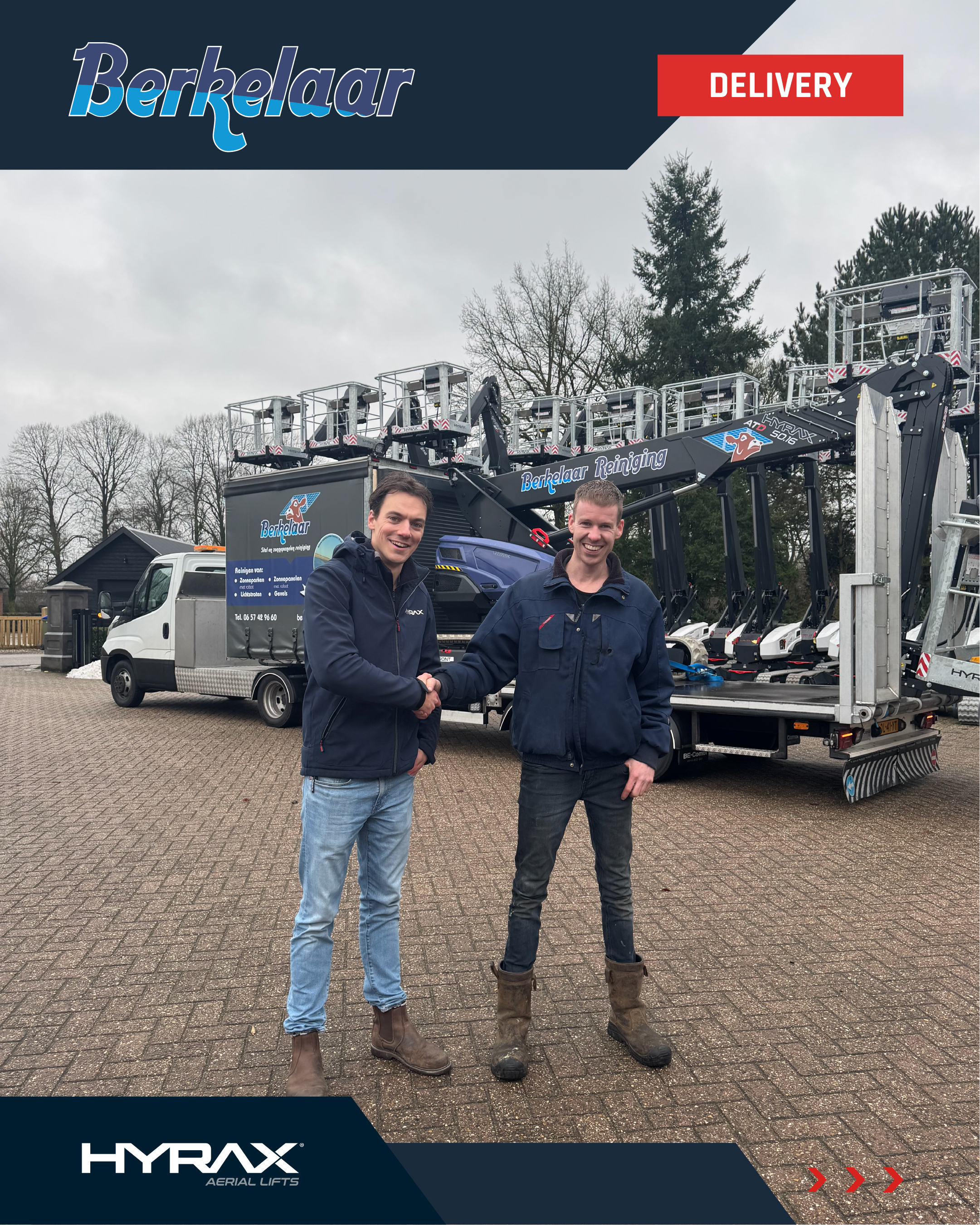 Een paar weken geleden leverden we de HYRAX ATD 50.16 af bij Berkelaar Stal & Zonnepanelen Reiniging. Met deze krachtige hoogwerker kan Erwin Berkelaar zijn specialisme verder versterken: het grondig reinigen en verzorgen van zonnepanelen. Efficiënt, veilig en betrouwbaar werken op hoogte. Wij bedanken Berkelaar Reiniging voor het vertrouwen in HYRAX!
